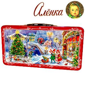 Яркая упаковка наполнена вкусными конфетами от знаменитой фабрики Красный Октябрь и лучшими сладостями от Алёнки.