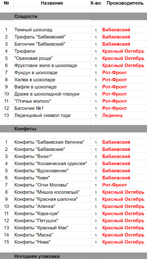 Опубликовано в Составы подарков
